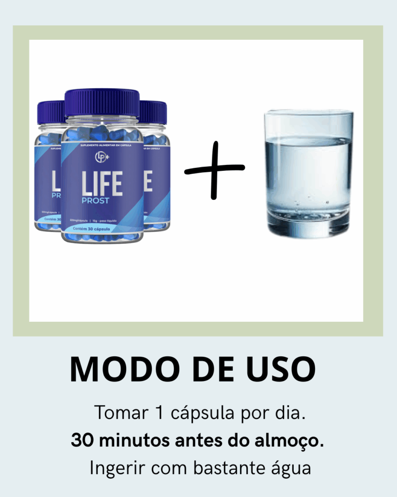 Life Prost deve ser tomado diariamente, uma cápsula ao dia, antes do almoço.